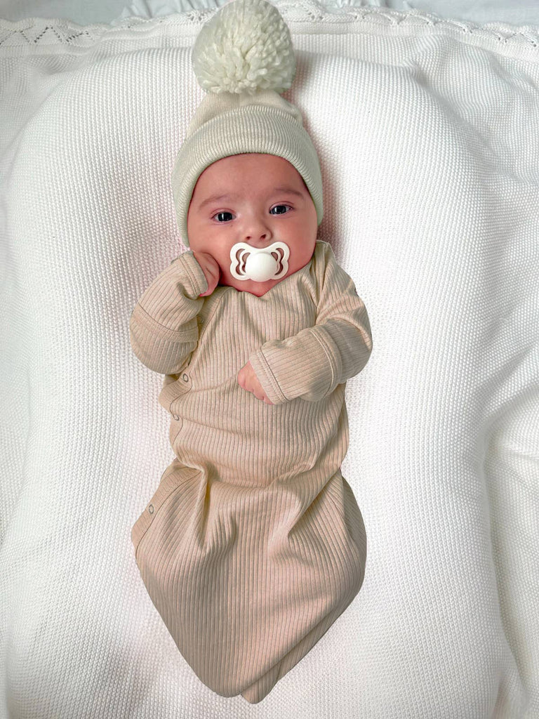 SIIX Collection - Pine / Organic Pointelle Beanie: 0 - 3 mo.