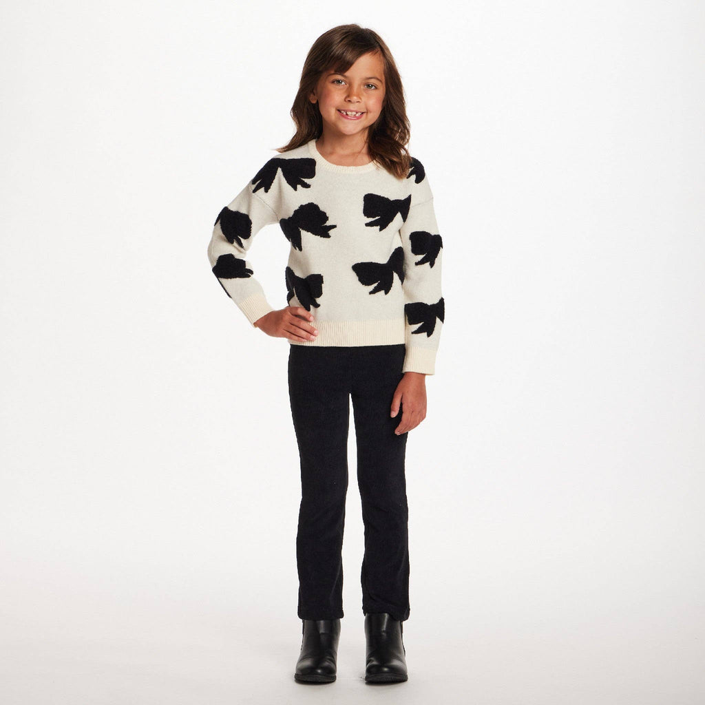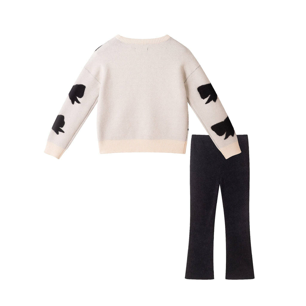 * 2-Piece Set: Includes raised-yarn bow sweater and solid black leggings