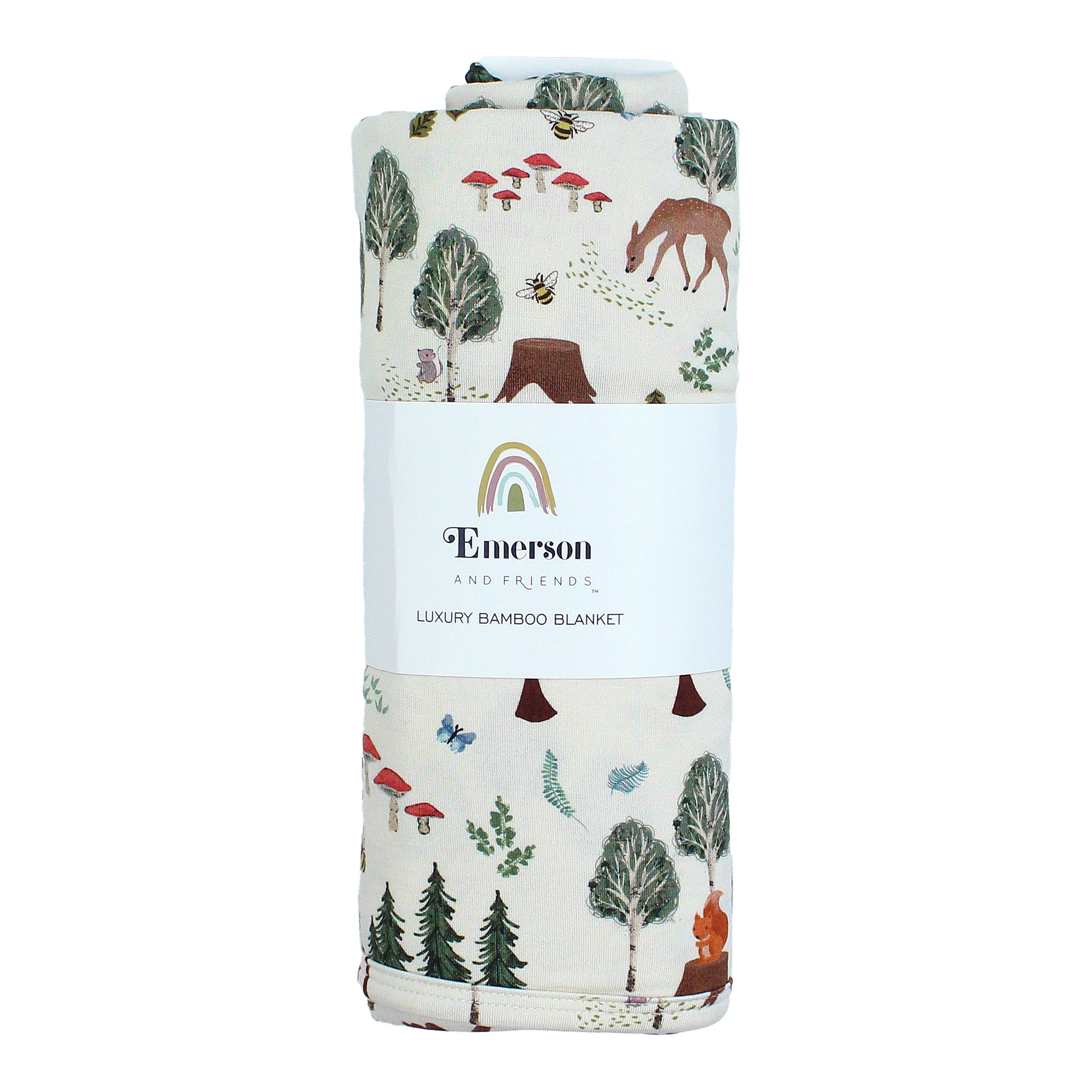 Emerson and Friends - In the Woods Luxury Bamboo Blanket: Green/Multi / Small