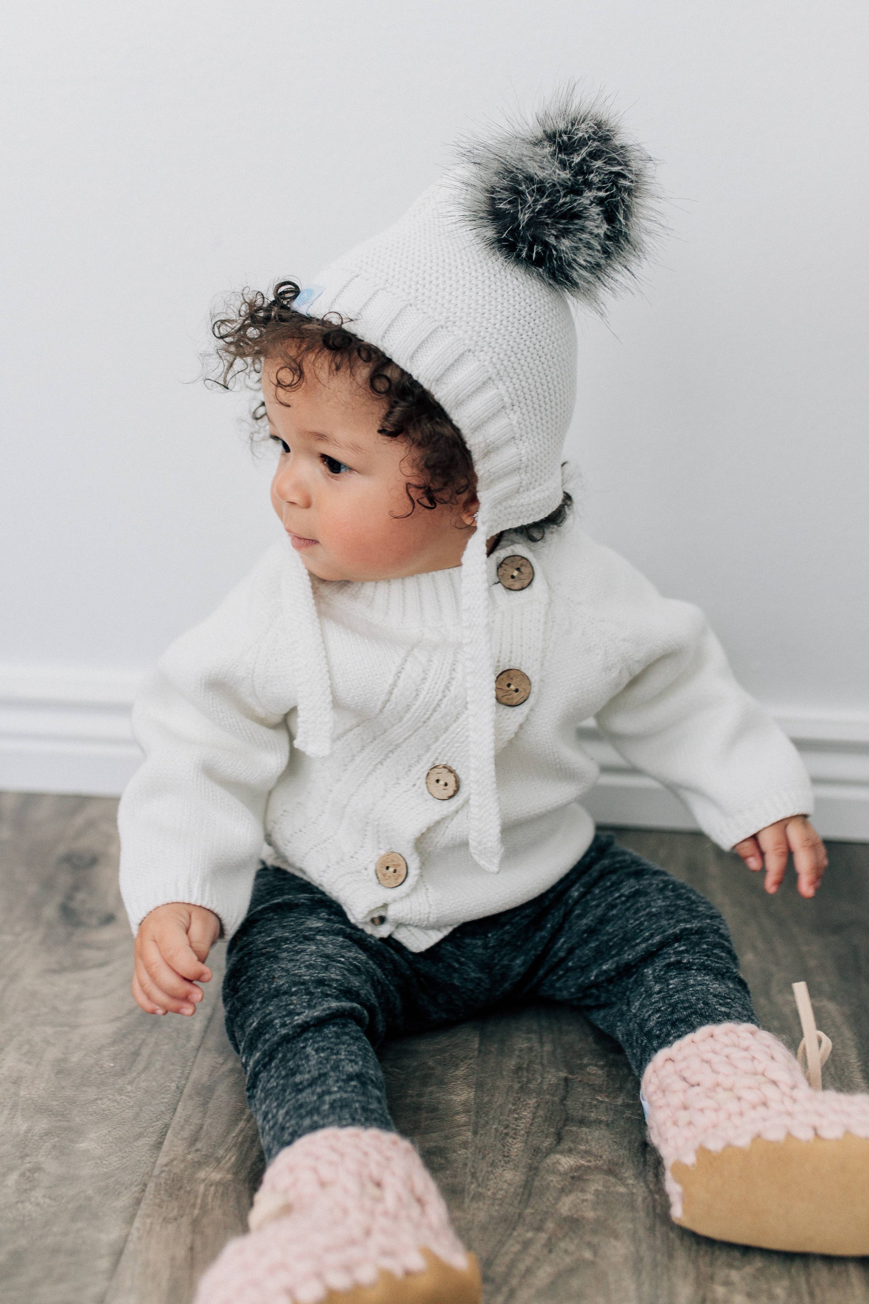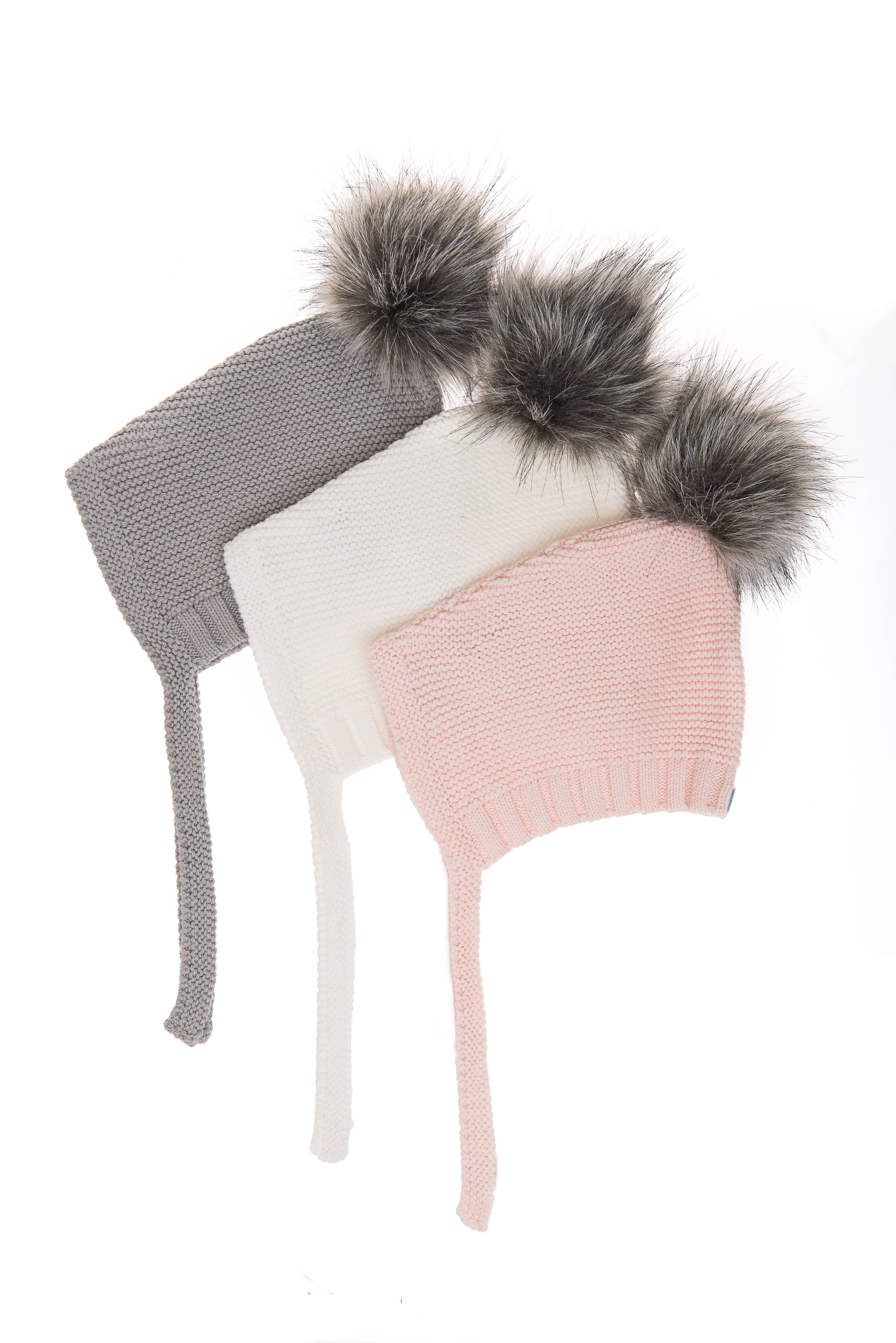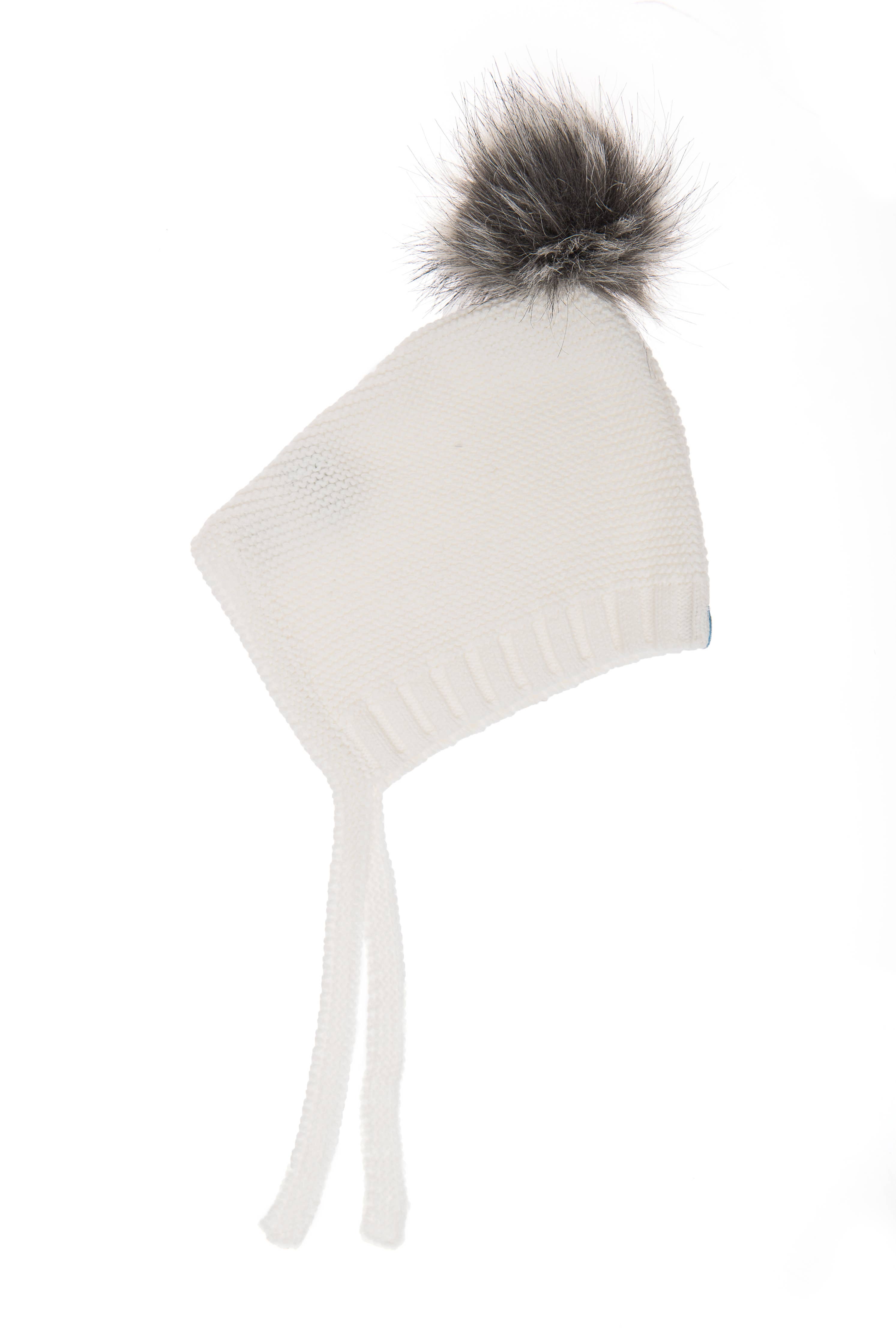 This pearl knit hat adds extra cuteness with the faux fur pom pom. 100% Cotton | Hand wash, air dry |