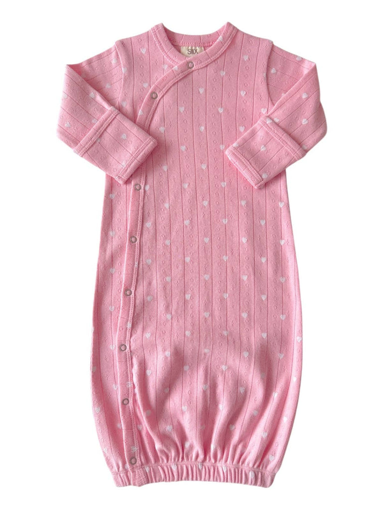 SIIX Collection - Pink with White Heart / Organic Pointelle Gown: 0-3M