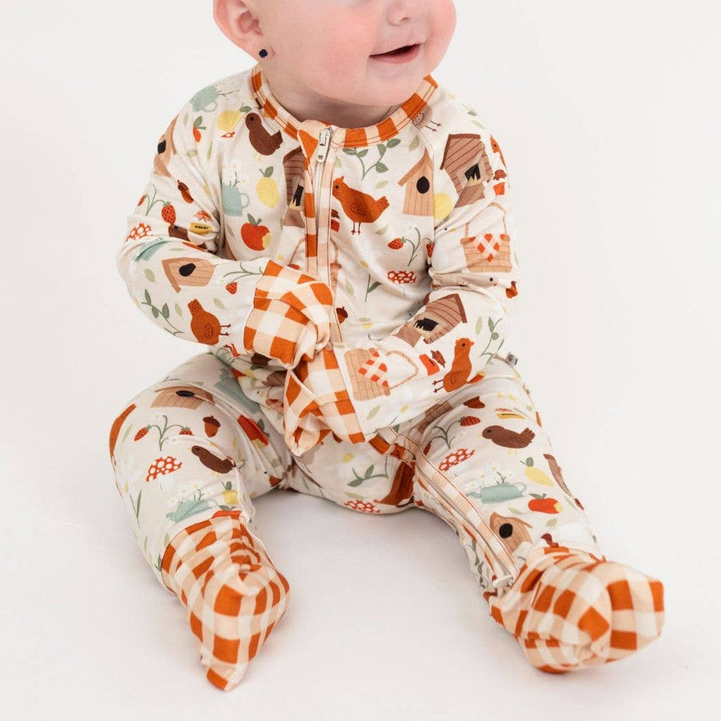The softest bamboo baby pajamas in our Cozy Cottage pattern! Check out more with this print for the cutest sibling match!