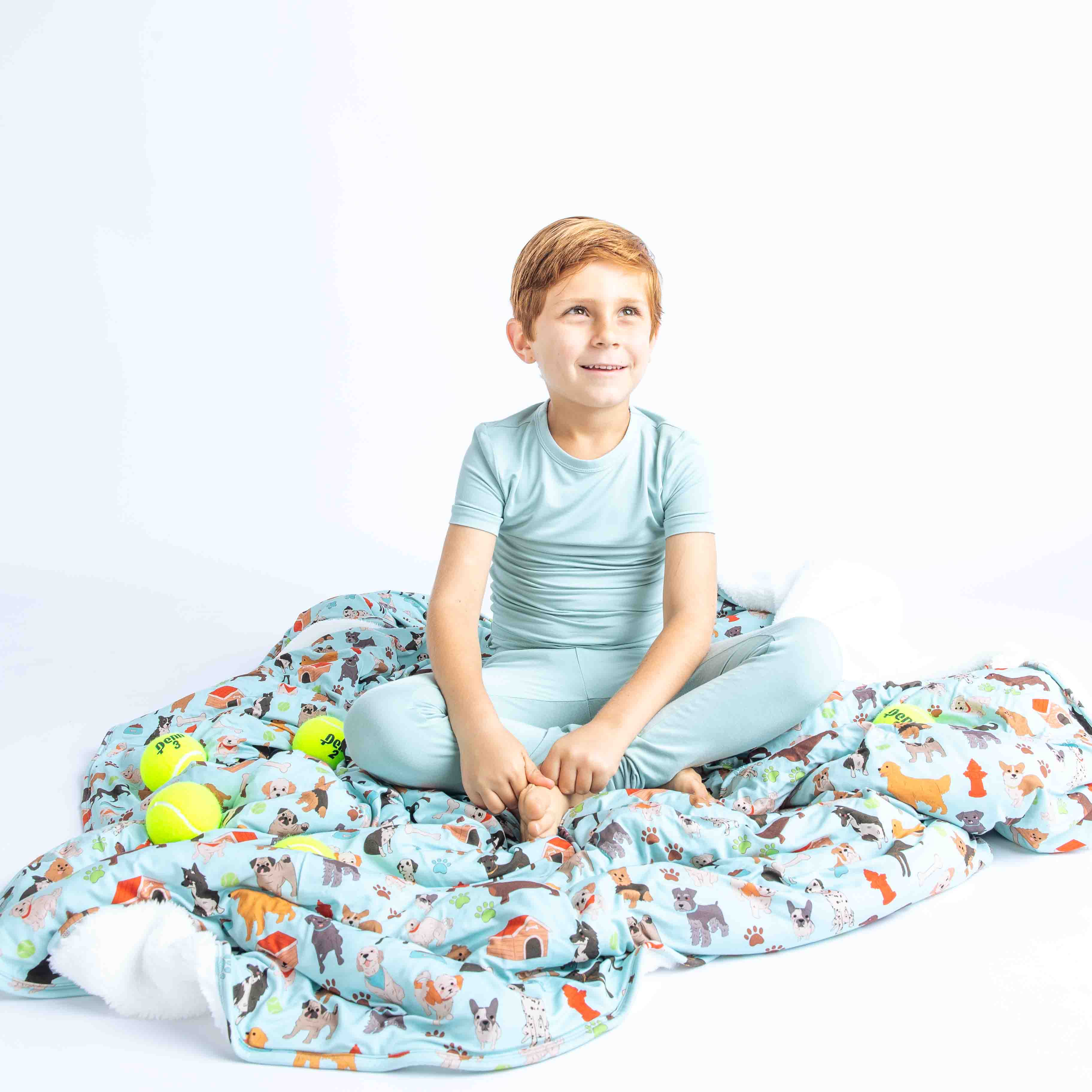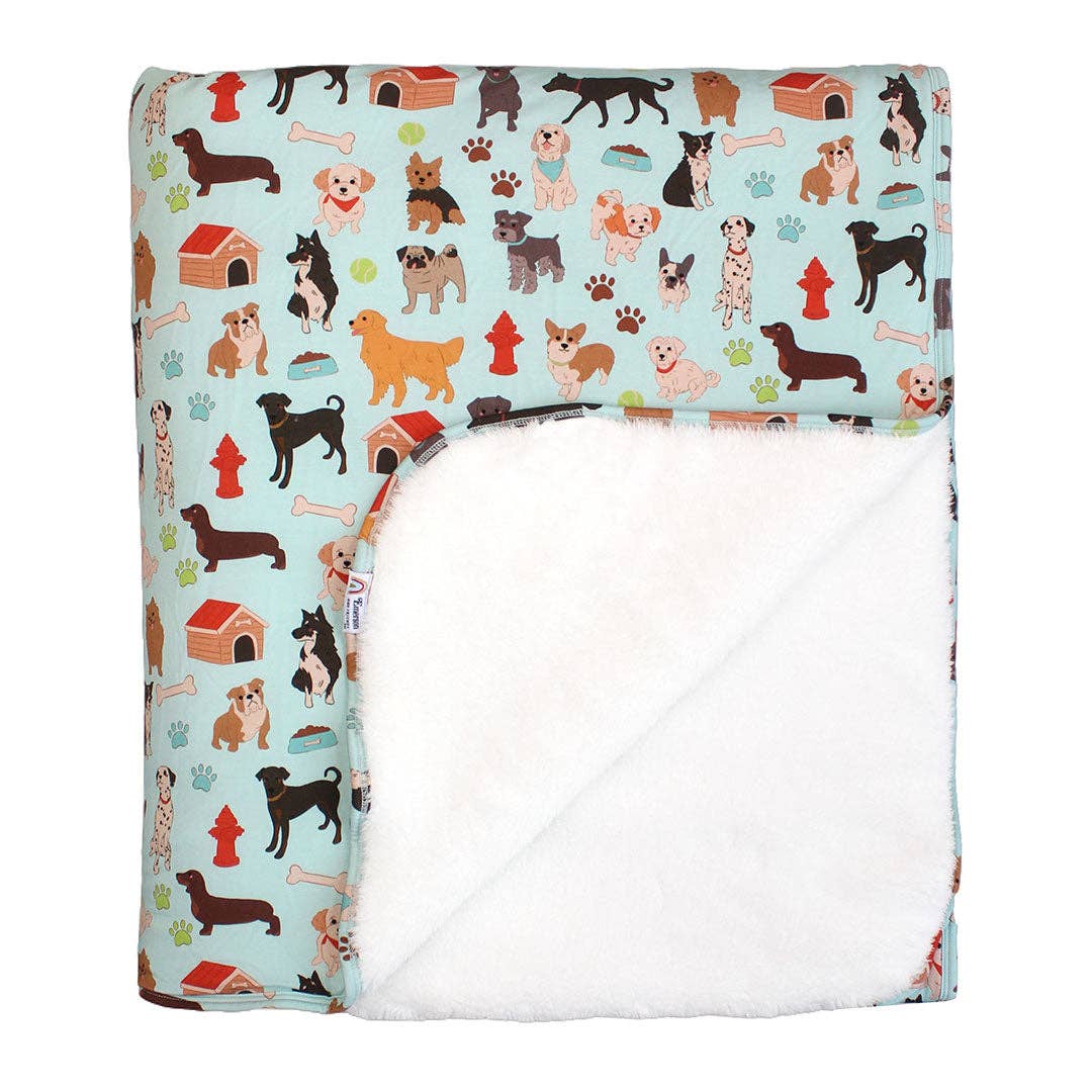 Emerson and Friends - Dogs Bark Bamboo and Fleece Throw Blanket Dog Lover Gift: Blue/Multi / Twin