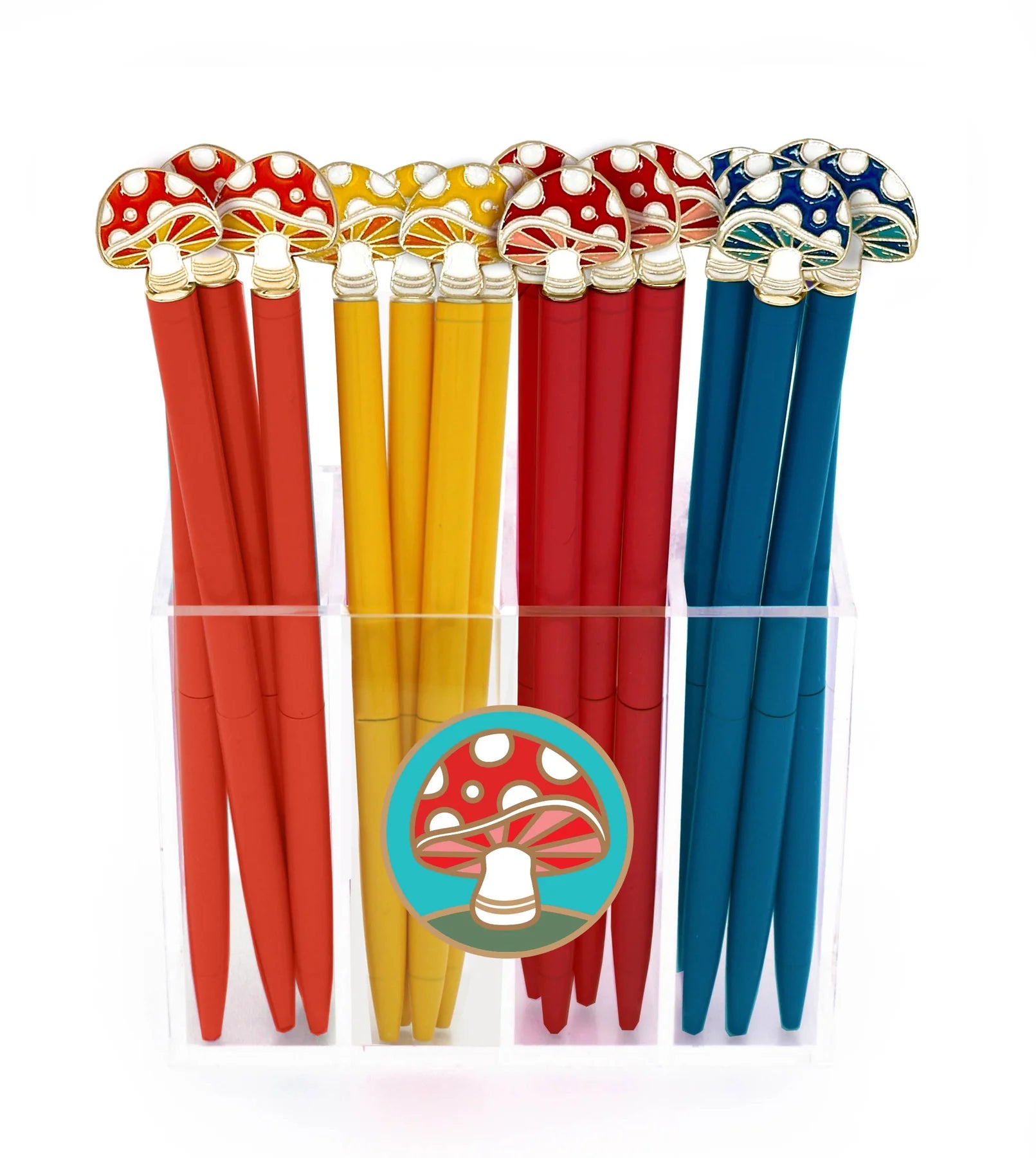 Our sweet enamel pens make the perfect pick-me-up gift. Double sided mushrooms are so cute! Available in 4 gorgeous colors – Yellow, Teal, Red and Orange. Black ink, smooth writing ballpoint.