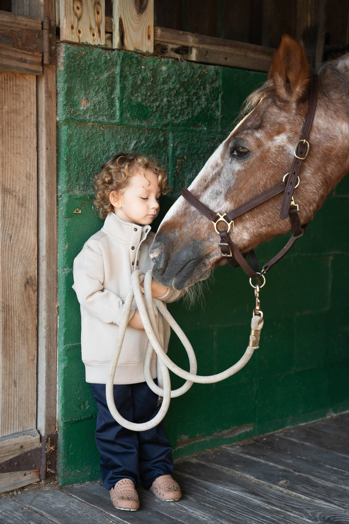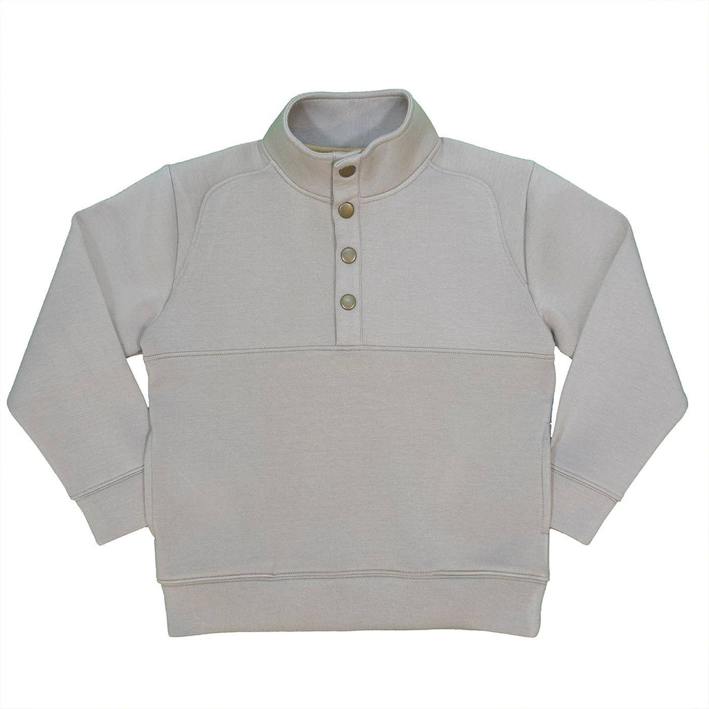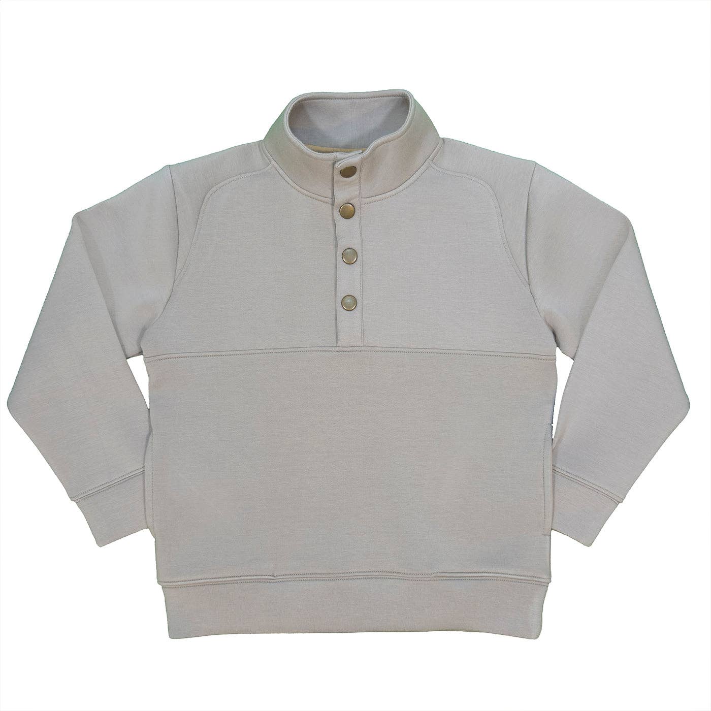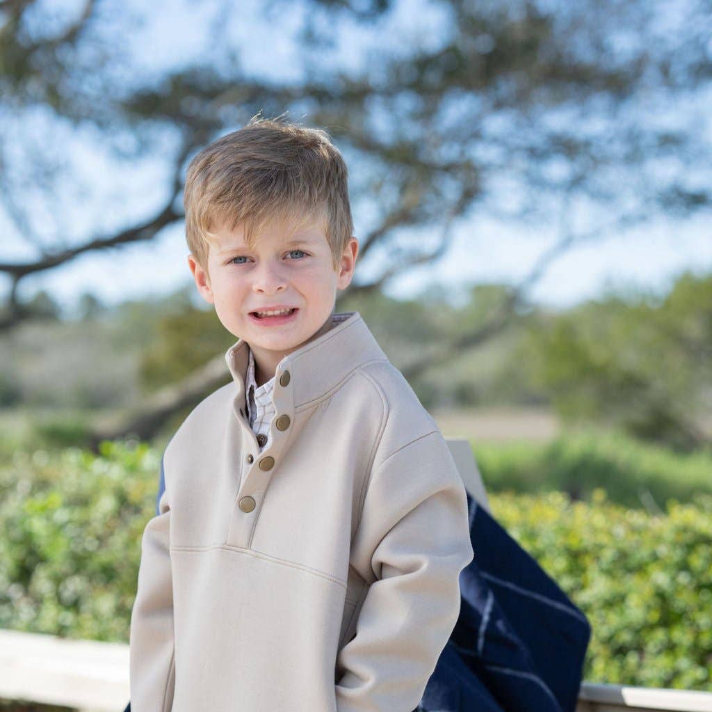 Your little man's wardrobe will be ready for any Fall or Winter outing with the Pierce Performance Pullover in Khaki. Keep him warm and stylish on any outdoor adventure with this ultra-soft boys scuba pullover. The back of the neck also features the signature marlin embroidered in green Cold temps? He won't feel a thing! Cool style? It's check-marked! Make unforgettable memories with this scuba performance fabric that boys love, keeping him comfy and warm. The SBC Pierce Pullover is an absolute must-have for any little boy's closet this season. * 74% Rayon, 14% Nylon, 12% Spandex * Mid-weight soft fabric * Pockets for cold hands * Antique brass snaps