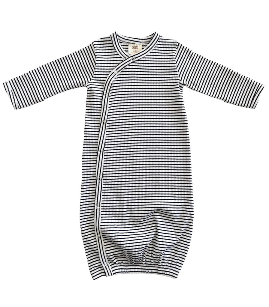 On the Organic Gown, now you have ultimate convenience and comfort, too. Newborns can grow with this gown, and parents love how easy diaper changes are.